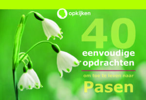 Leef met het hele gezin toe naar Pasen en lees elke dag samen een kaartje met de opdracht. Er zijn tien verschillende soorten opdrachten, onder andere een filmpje kijken, een Bijbeltekst ter bemoediging lezen, iets doen in of voor de natuur, iets doen voor een ander.